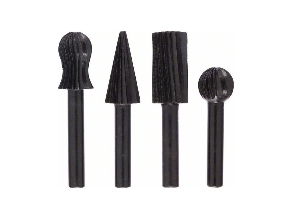 4-dielna sada ručne vedených fréz obsahuje príslušenstvo, ktoré umožňuje vyhladzovanie a opracovávanie rozličných tvarov v širokej škále materiálov. Obsahuje frézy s konkávnym, kužeľovitým, valcovitým a okrúhlym tvarom, vďaka čomu je ideálna pre širokú škálu aplikácií v dreve a neželezných kovoch aj v železe.