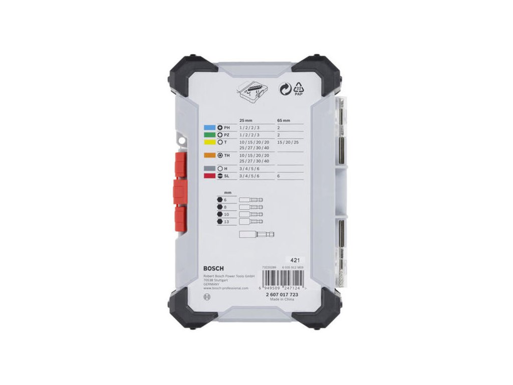Sada je uložená v robustnom kufríku Pick and Click, ktorý môžete použiť na zostavenie vlastného kufríka s náradím s prehľadne usporiadanými a chránenými bitmi