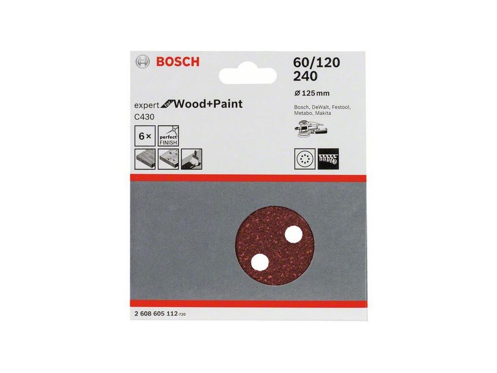 Bosch 6-dielna sada Brúsny papier C430, 125 mm, P60/120/240, pre excentrické brúsky 2608605112