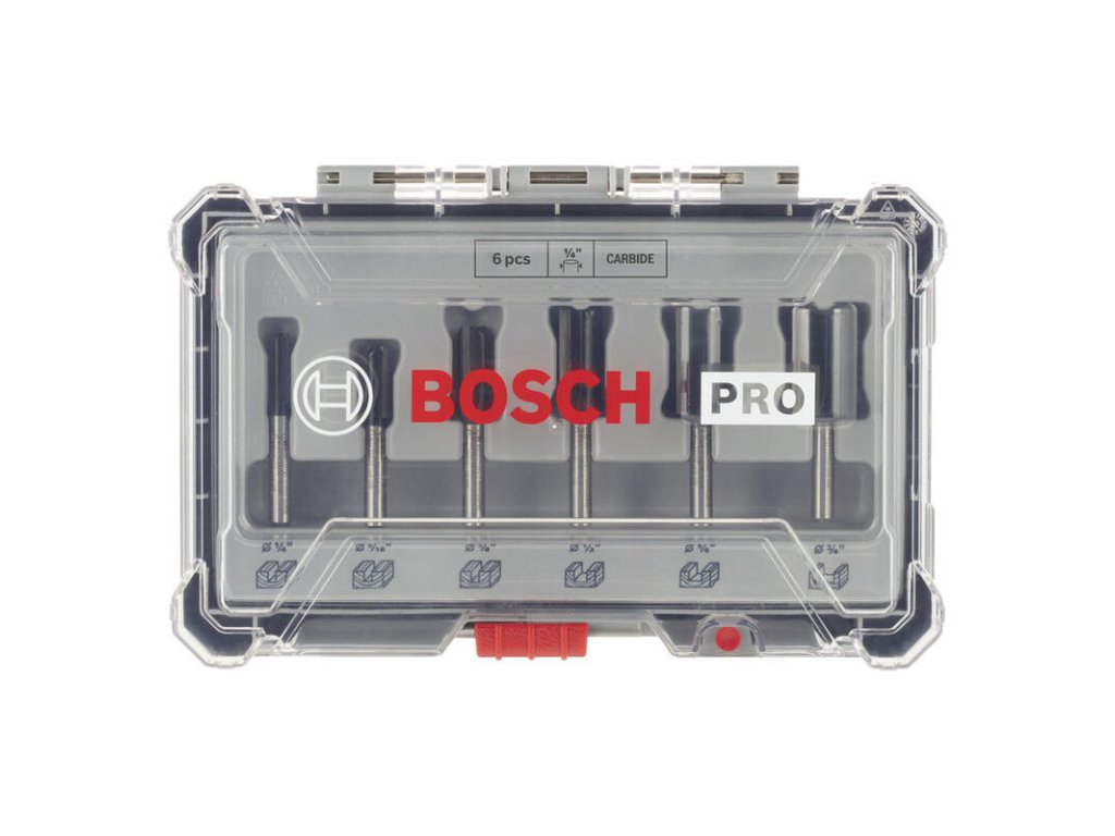 Pre majiteľov horných frézok s palcovou klieštinou (1/4") je tu táto 6-dielna sada Bosch. Obsahuje výber najpoužívanejších priemerov drážkovacích fréz. Karbidové brity (tvrdokov) zaručujú dlhú životnosť a čistý rez v mäkkom aj tvrdom dreve. Dodávané v prehľadnom plastovom puzdre Easy-Pick.