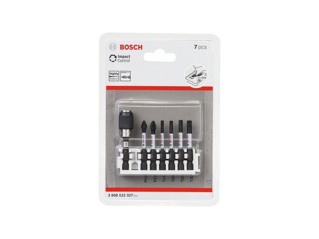 7-dielna sada skrutkovacích bitov Impact Control, 1xPH2; 1xPZ2; 1xT15; 1xT20; 1xT25; 1xT30 - Bosch