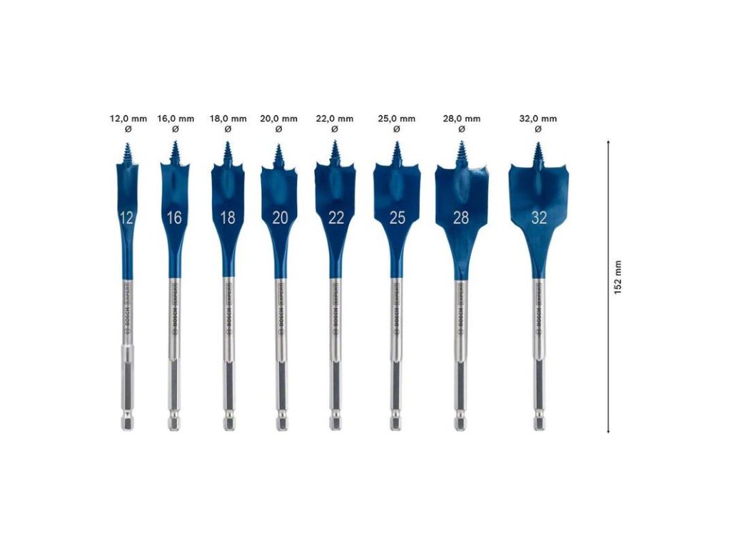 8-dielna súprava plochých frézovacích vrtákov EXPERT Self Cut Speed s priemermi: 12/16/18/20/22/25/28/32 mm