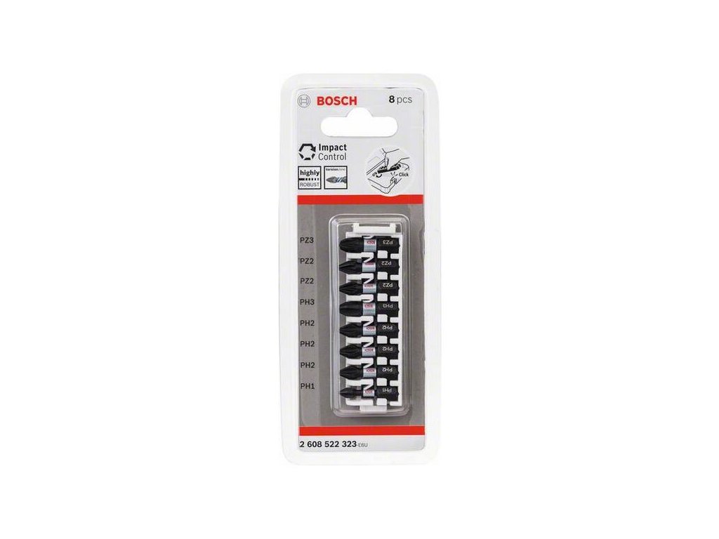 Bosch 8-dielna sada skrutkovacích bitov dĺžkou 25 mm Impact Control, 1xPH1, 3xPH2, 1xPH3, 2xPZ2, 1xPZ3 2608522323