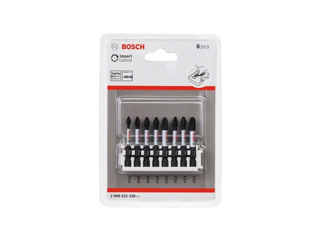 Balenie 8 ks skrutkovacích bitov Impact Control 1xPH1 3xPH2 1xPH3 2xPZ2 1xPZ3 - Bosch