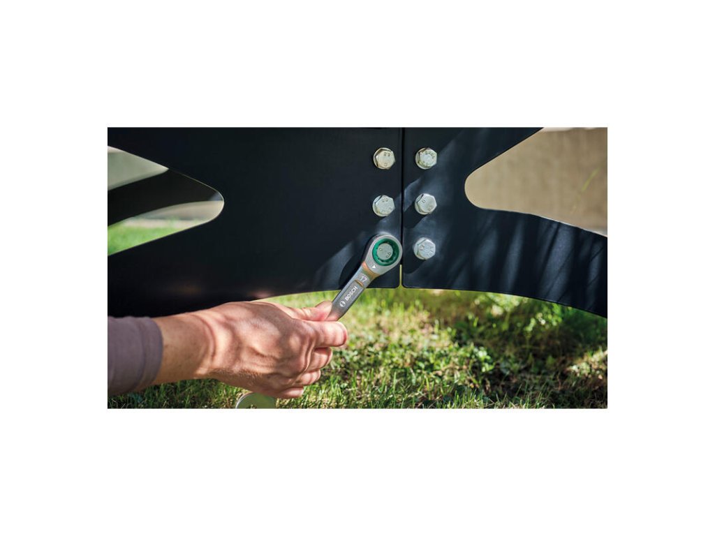 - Univerzálne použitie vďaka kľúčom kombinujúc im vidlicový a očkový račňový kľúč
