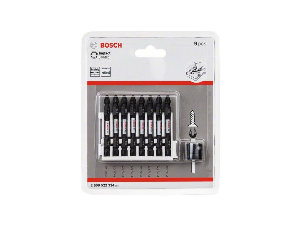 Bosch 9-dielna sada obojstranných skrutkovacích bitov dĺžkou 65 mm Impact Control, PH2,PZ2 2608522334