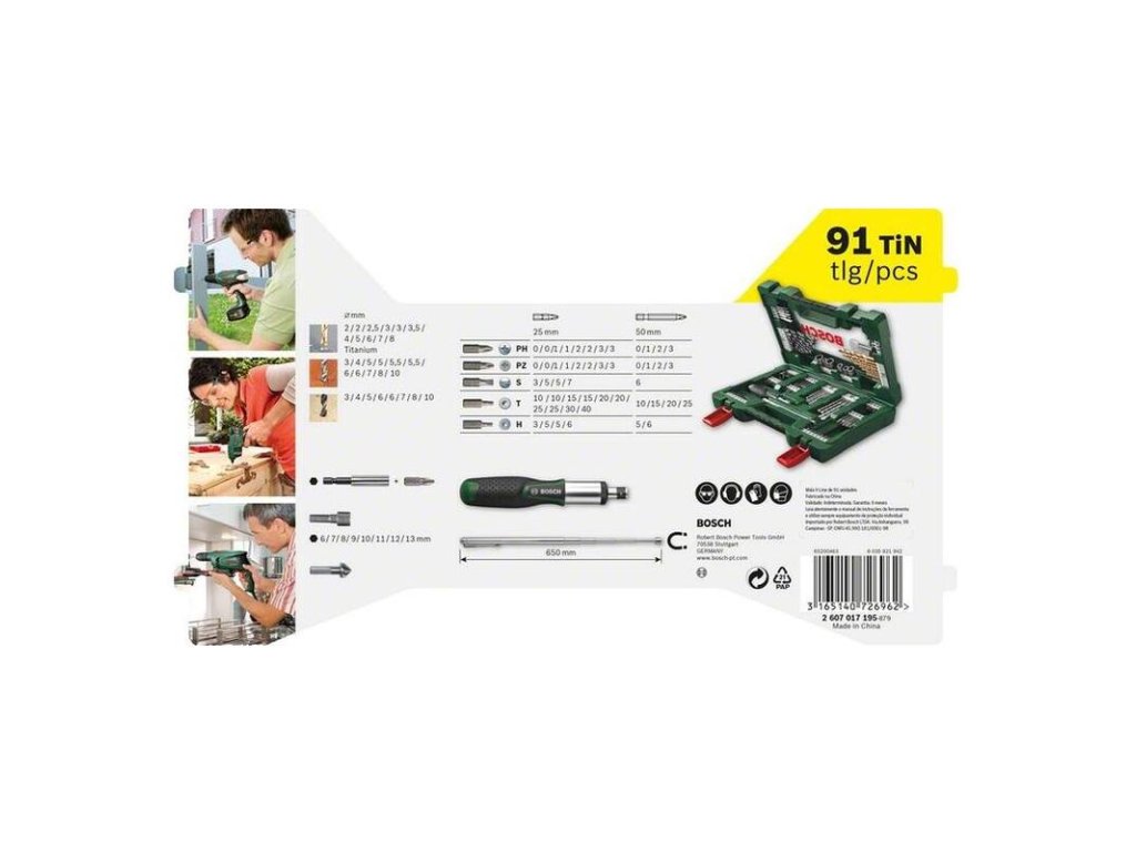 91-dielna sada vrtákov a skrutkovacích hrotov V-Line TiN - Bosch