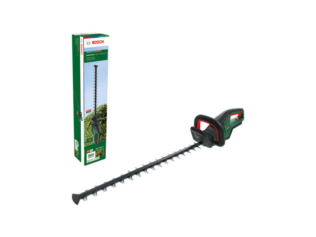 Akumulátorové nožnice na živé ploty AdvancedHedgeCut 36V-65-28; Vysokovýkonné akumulátorové nožnice na živé ploty na hrubšie konáre; Bezuhlíkový motor poskytuje vysoký výkon a umožňuje náročnejšie strihanie; Manipulácia bez námahy vďaka ľahkej, ergonomickej konštrukcii; Patentovaný antiblokovací systém Bosch zabraňuje zasekávaniu a umožňuje neprerušované strihanie; Rýchlosť strihania zodpovedajúca výkonu elektrického náradia; Pozoruhodné strihanie konárov hrúbky až 28 mm, ako napr. živých plotov z hlohu a dráča; Technológia Syneon na optimálny výkon alebo maximálnu výdrž podľa potreby; 36V POWER FOR ALL – akumulátor pre všetko náradie Bosch Home & Garden triedy 36 V; Zakrytovanie nožov; Kartónová škatuľa