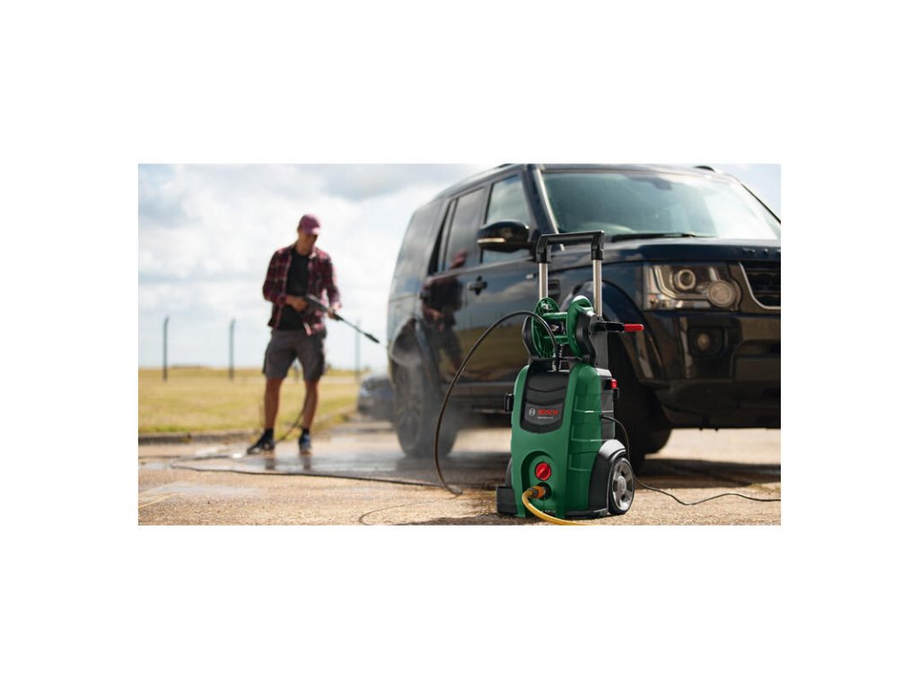 Vysokotlakový čistič AdvancedAquatak 160; Zvládnite odolné nečistoty pomocou výkonného čistenia s technológiou čerpadiel Quad; Technológia čerpadiel Quad dodáva silný čistiaci výkon s tlakom 160 bar; Výber dýz ponúka univerzálne možnosti čistenia, perfektné na odolné nečistoty; Bubon vysokotlakovej hadice a násuvné spojky uľahčujú zostavovanie; 550 ml vysokotlaková dýza na čistiaci prostriedok šetrí čas rýchlou aplikáciou mydla; Väčšia mobilita vďaka teleskopickej násade a veľkým kolesám; Vysokotlaková pištoľ Bosch; Násada; Vysokotlaková hadica 8 m; Pevná vejárová dýza; Násada s rotačnou dýzou; Násada s variabilnou dýzou; Vysokotlaková dýza na čistiaci prostriedok, 550 ml; Vodný filter, kovový; V škatuli