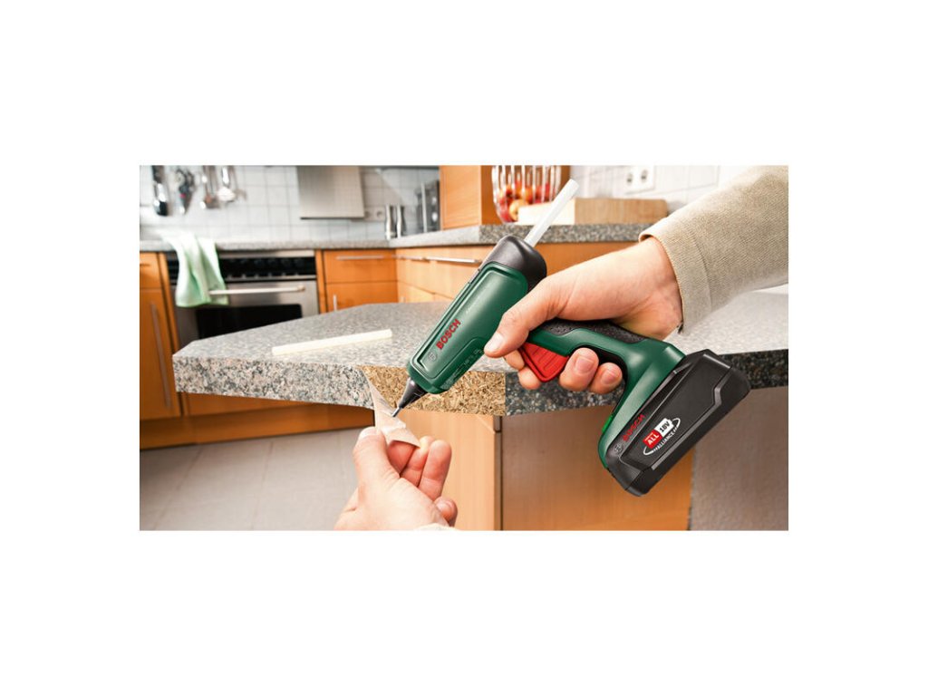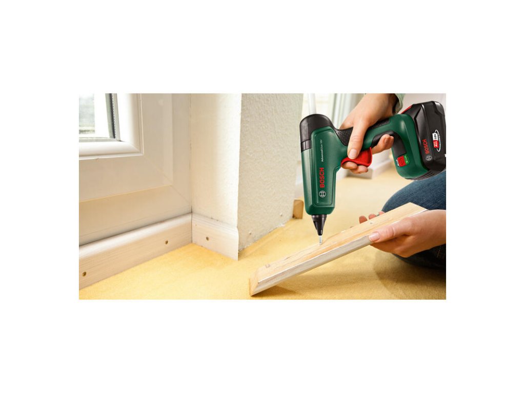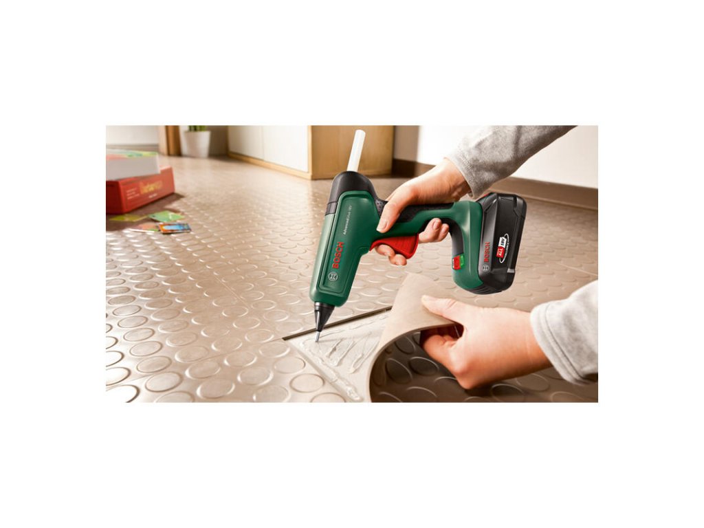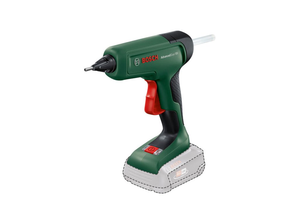 Akumulátorová tavná lepiaca pištoľ AdvancedGlue 18V; Všestranná lepiaca pištoľ s vysokým lepiacim výkonom; Pevný lepený spoj vďaka trvalo vysokej teplote lepenia; Náradie zahriate a pripravené na lepenie za 90 sekúnd; Vysoká lepiaca kapacita 20 g za minútu; Režim dvoch teplôt umožňuje vyššiu všestrannosť vďaka nastaveniu vysokej a nízkej teploty; POWER FOR ALL: jeden akumulátor a jedna nabíjačka pre celý systém náradia Home & Garden; V škatuli; 4 tavné lepidlá UltraPower
