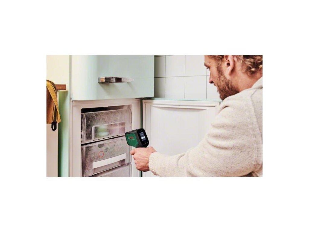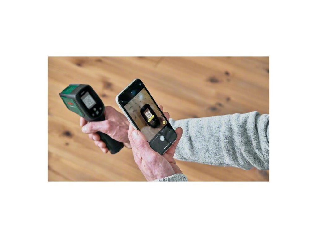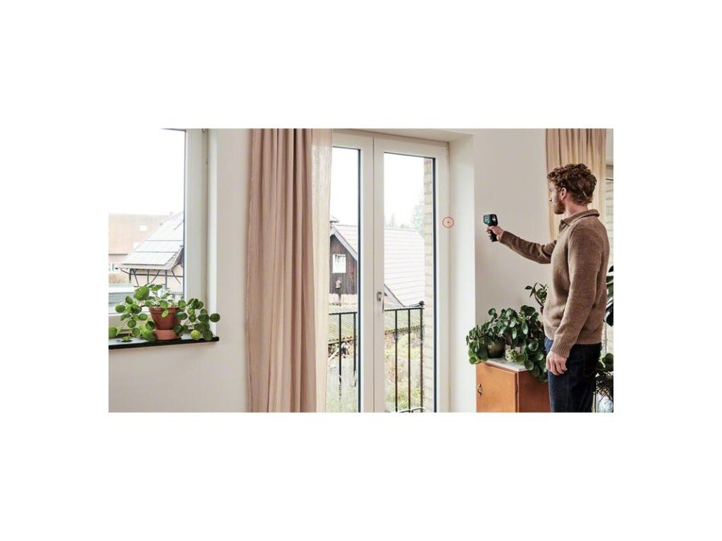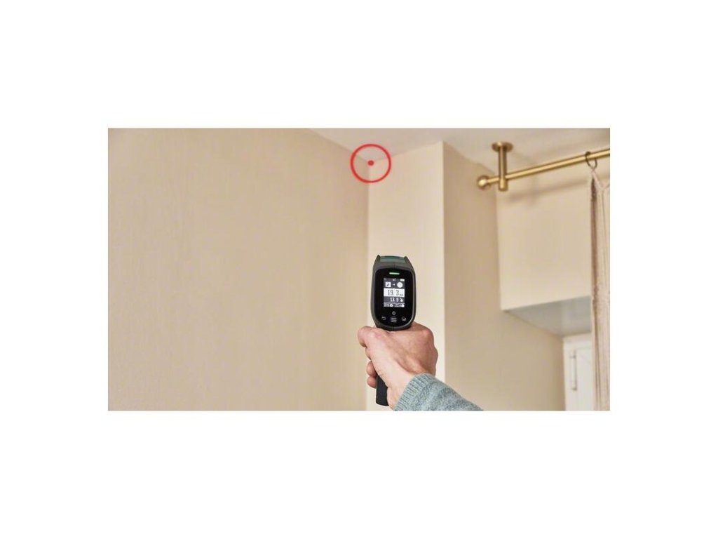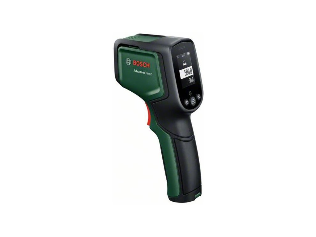 Detektor teploty AdvancedTemp; Úspora energie a lepšia kvalita života; Jednoduché meranie povrchovej a izbovej teploty, ako aj vlhkosti vzduchu; Široký teplotný rozsah od −30 °C do +500 °C; Identifikuje nedostatočnú izoláciu a deteguje tepelné mosty; Odhaľuje riziko plesne na základe analýzy teploty a vlhkosti a interpretácie dát; Recyklované materiály použité na produkte a balení prispieva k udržateľnosti; Náradie podporuje trvalú udržateľnosť, viac podrobností nájdete nižšie; V škatuli; Mäkký vak; Stručný návod; 2 batérie 1,5 V LR06 (AA)