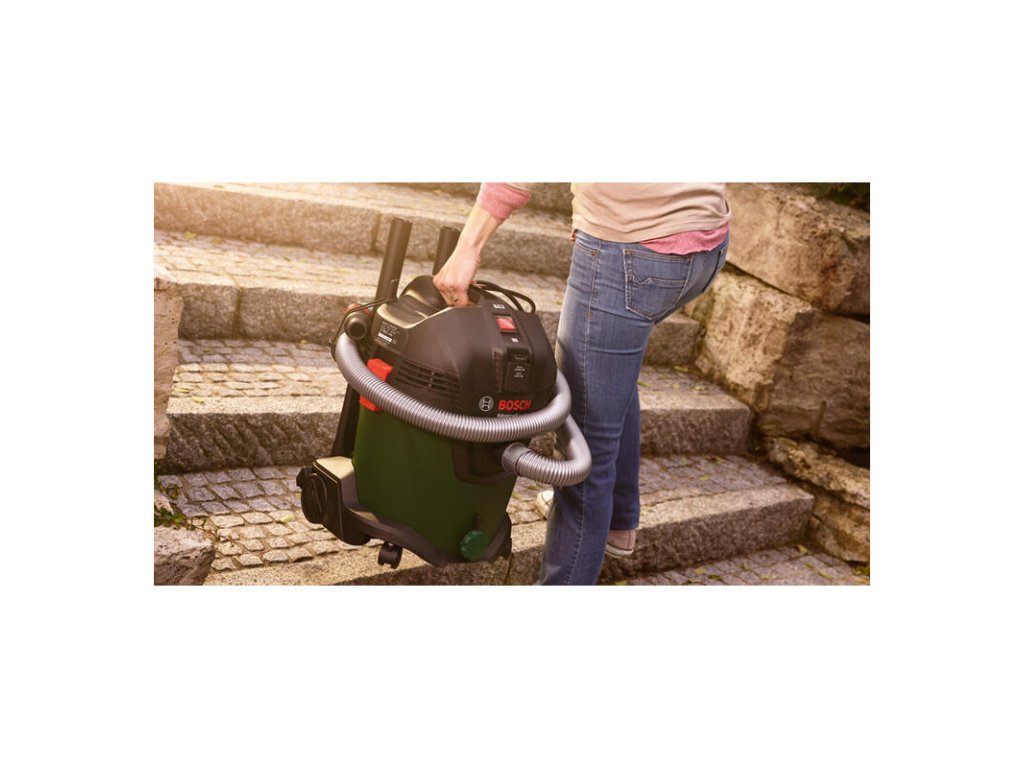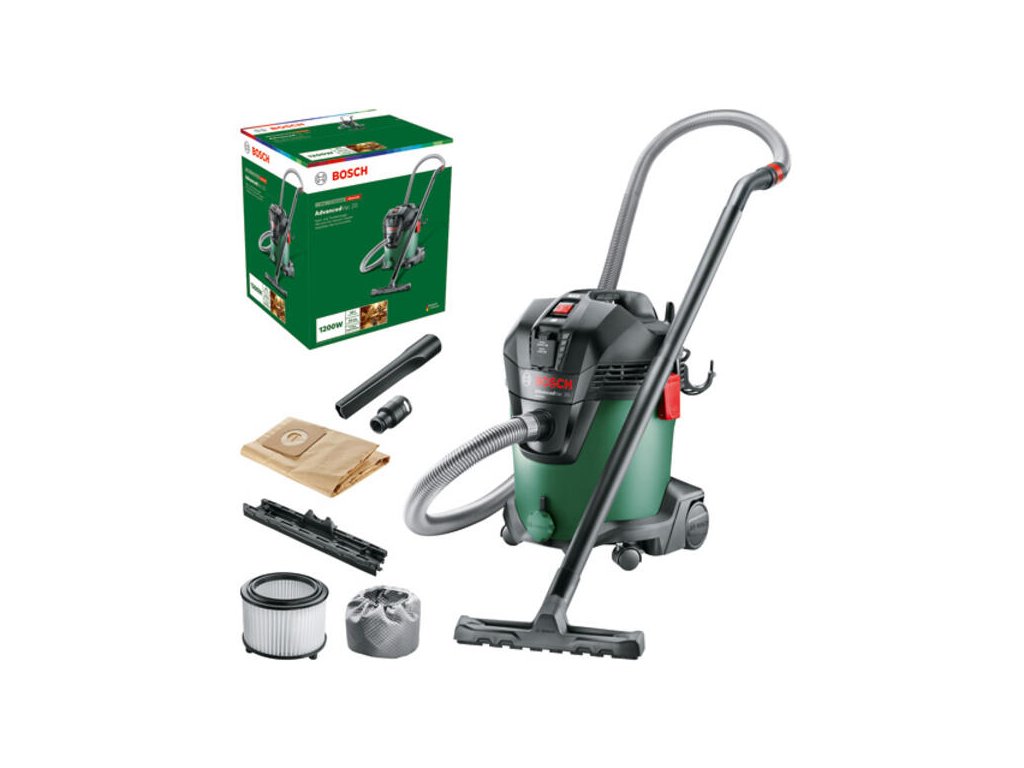 Vysávač na suché a mokré vysávanie AdvancedVac 20; S ľahkosťou porazí všetky nečistoty, mokré alebo suché; Čistí dielenské priestory od prachu a triesok, ako aj od mokrého materiálu; Pri používaní s elektrickým náradím sa automaticky zapína a vypína; Vypúšťací ventil umožňuje účinné vypustenie načerpaného veľkého objemu vody; Ideálny na ofukovanie listov a nečistôt z ťažko dostupných miest; Antistatická hadica minimalizuje elektrický výboj; Papierové filtračné vrecko (2.609.256.F33); ** možnosť dokúpenia iba ako súprava po 5 ks; Predradený filter (2.609.256.F41); Filter (2.609.256.F35); Rukoväť (2.609.256.F31); Štrbinová hubica (2.609.256.F26); 2× extrakčné rúry, 0,5 m, Ø 35 mm (2.609.256.F27); Hubica na podlahu (2.609.256.F21); Kefová vložka (2.609.256.F22); Gumová hubicová vložka (2.609.256.F24); 2,2 m hadica, Ø 35 mm, antistatická (2.609.256.F30); Univerzálny adaptér (2.609.256.F28); V škatuli