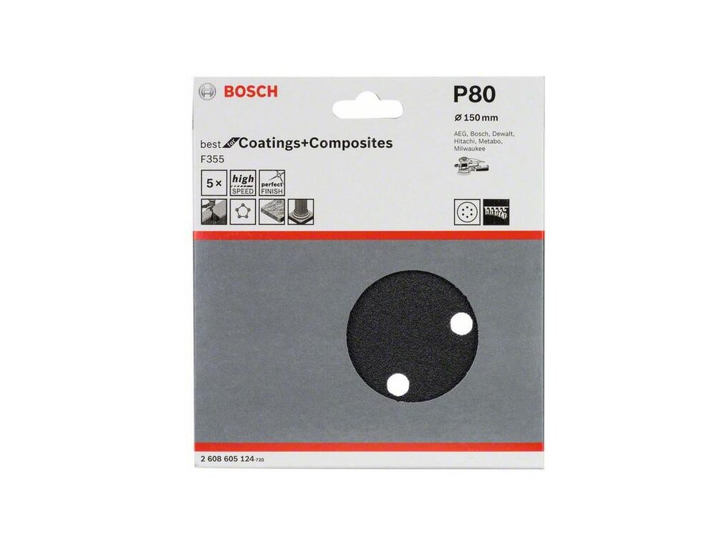 Bosch Brúsny kotúčový list F355, 150 mm K80 (5 ks)