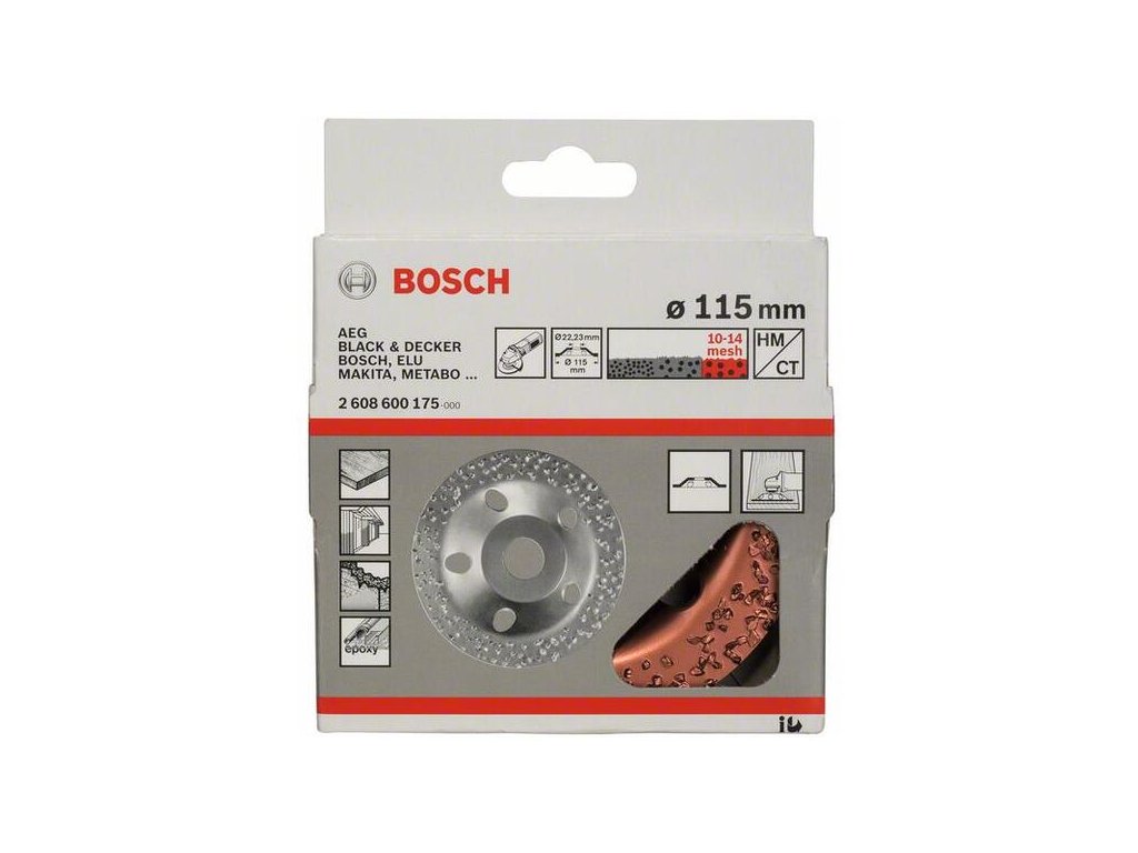 Bosch Brúsny miskovitý kotúč so zrnom tvrdého kovu, 115 22,23 mm hrubý rovný 2608600175