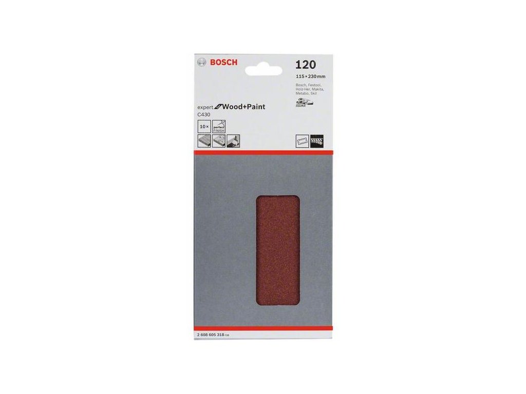 Bosch Brúsny papier C430, 115 230 mm, P120, pre vibračné brúsky (10ks) 2608605318