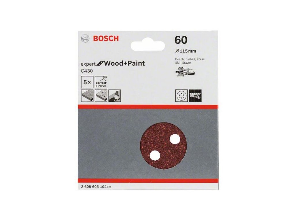 Bosch Brúsny papier C430, 115 mm, P60, pre excentrické brúsky, (5ks) 2608605104