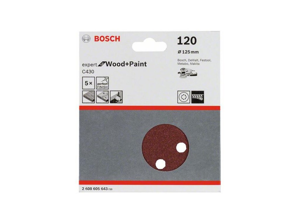 Brúsny papier C430, 125 mm, P120, pre excentrické brúsky, (5ks) - Bosch
