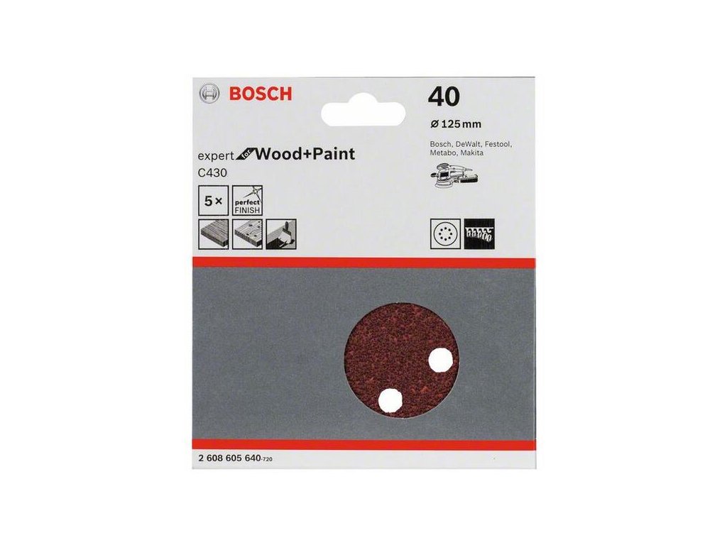 Brúsny papier C430, 125 mm, P40, pre excentrické brúsky, (5ks) - Bosch