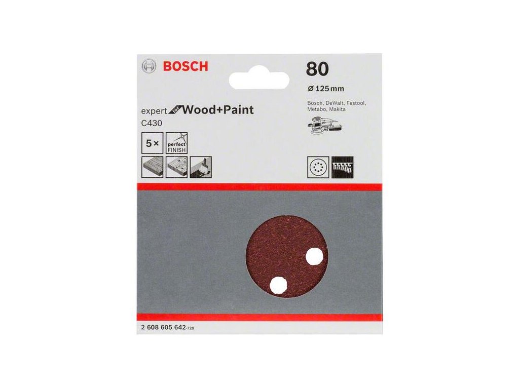 Brúsny papier C430, 125 mm, P80, pre excentrické brúsky, (5ks) - Bosch