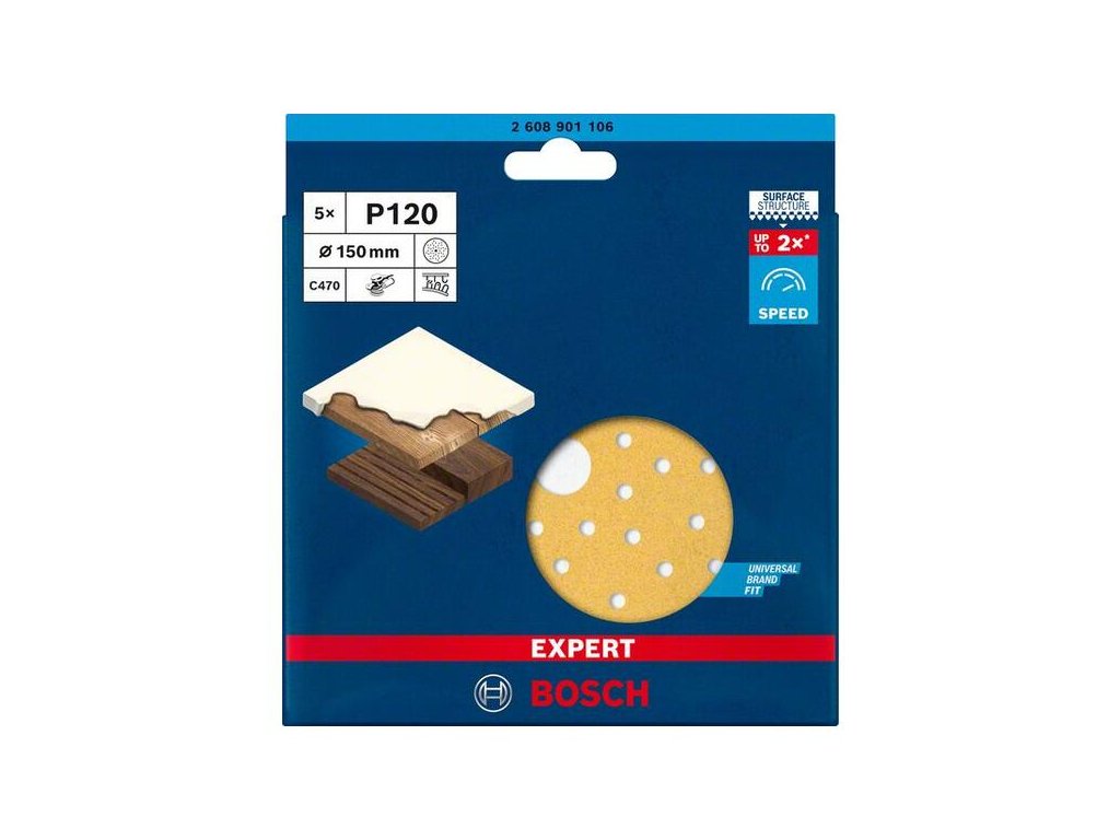 Bosch Brúsny papier EXPERT C470, 150 mm, P120, pre excentrické brúsky, (5ks) 2608901106
