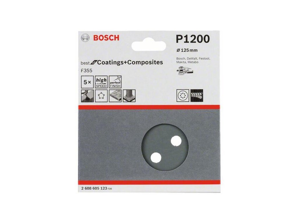 Bosch Brúsny papier F355, 125 mm, P1200 pre excentrické brúsky (5ks) 2608605123