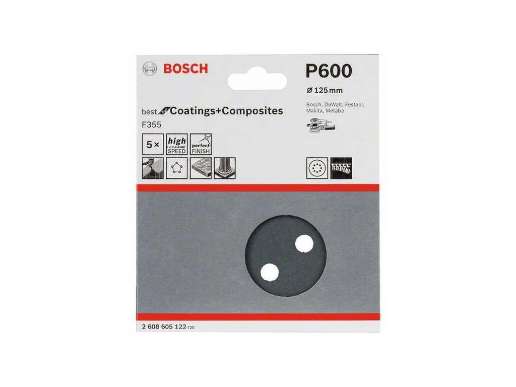 Bosch Brúsny papier F355, 125 mm, P600 pre excentrické brúsky (5ks) 2608605122