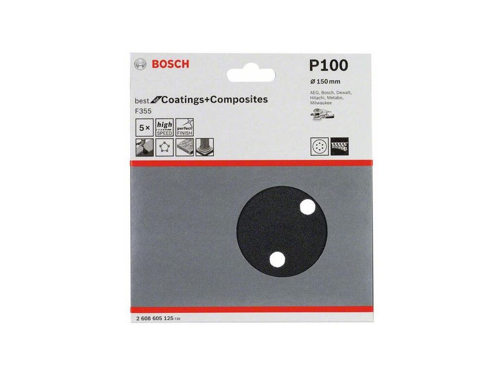 Bosch Brúsny papier F355, 150 mm, P100 pre excentrické brúsky (5ks) 2608605125