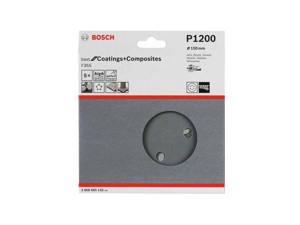 Bosch Brúsny papier F355, 150 mm, P1200 pre excentrické brúsky (5ks) 2608605132