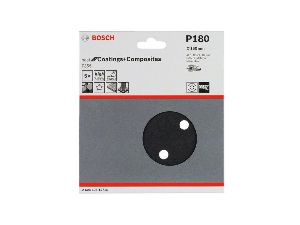 Bosch Brúsny papier F355, 150 mm, P180 pre excentrické brúsky (5ks) 2608605127