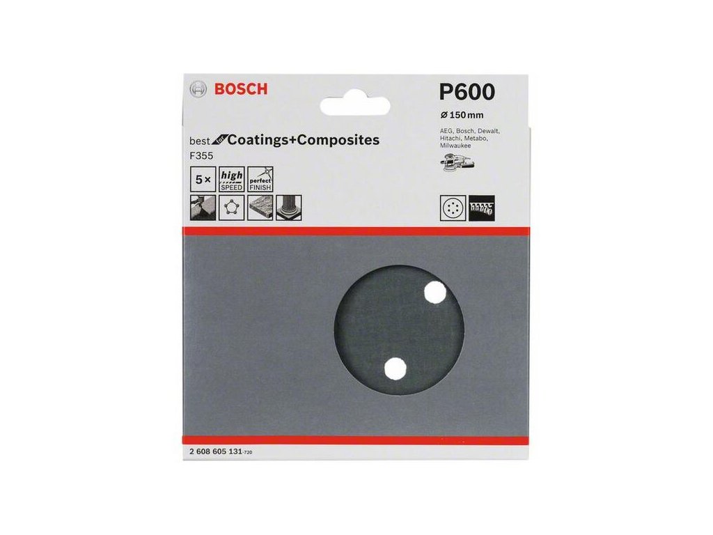 Bosch Brúsny papier F355, 150 mm, P600 pre excentrické brúsky (5ks) 2608605131