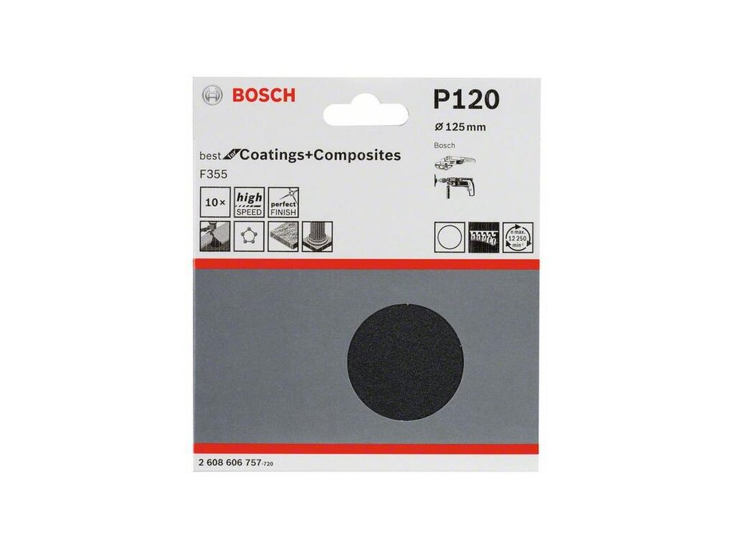 Bosch Brúsny papier F355 pre vŕtačky, 125 mm, P120 (10ks) 2608606757