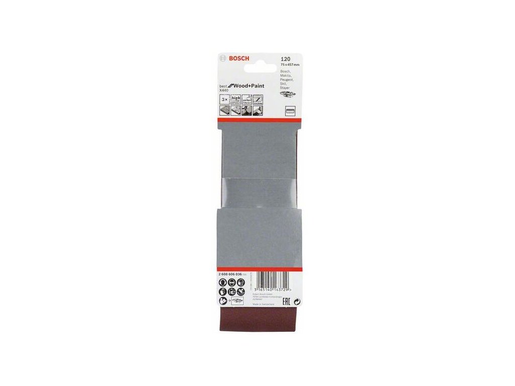 Brúsny pás X440, 75 x 457 mm, P120, pre pásové brúsky, (3ks) - Bosch