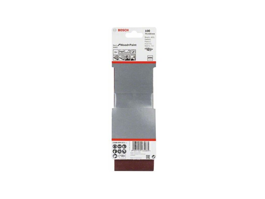 Brúsny pás X440, 75 x 533 mm, P100, pre pásové brúsky, (3ks) - Bosch