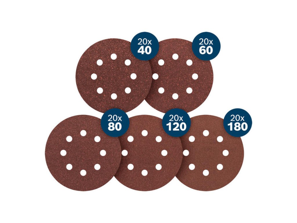 - 20x zrnitosť 40, 60, 80, 120, 180 (z každej 20 ks)