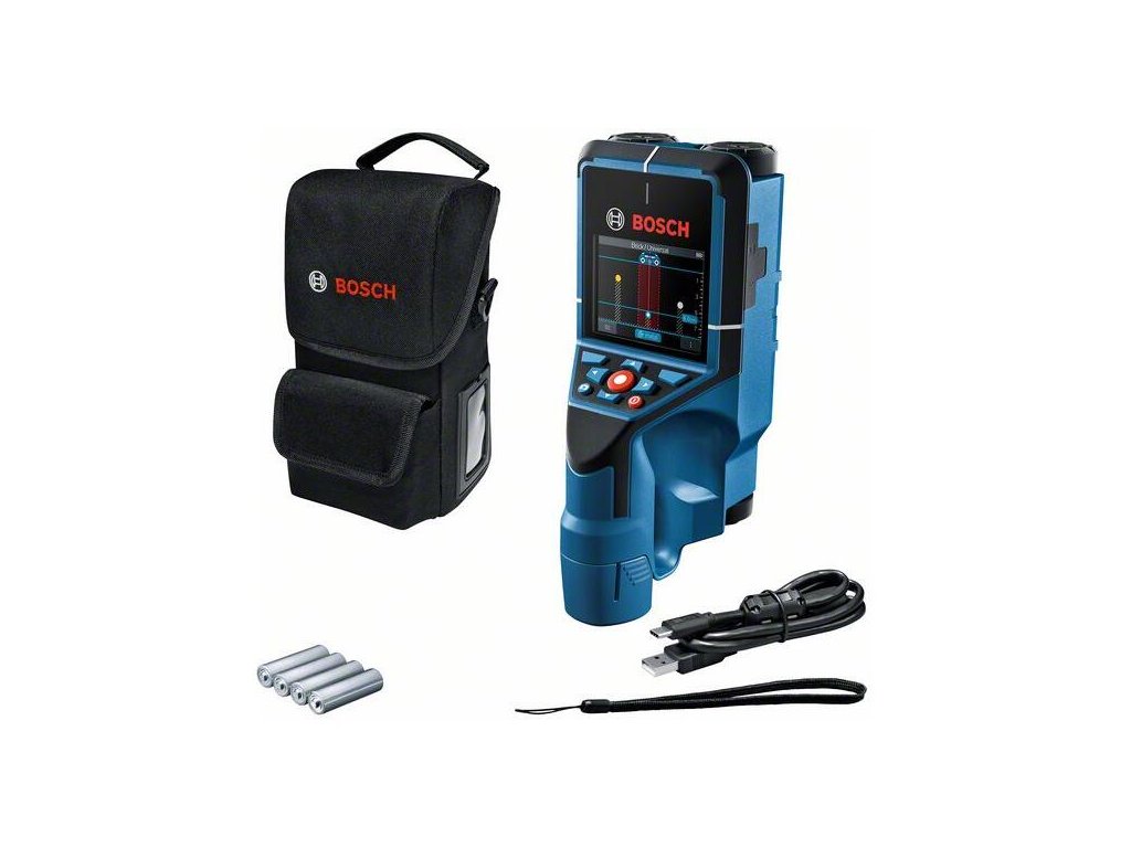 Detektor Detektor D-tect 200 C, D-tect 200 C Professional deteguje všetky bežné objekty, zreteľne ich zobrazuje a umožňuje ľahké spracovanie dokumentácie. Vďaka radarovej technológii Bosch a vylepšenému používateľskému rozhraniu je symbolom bezpečnej a presnejšej práce v odvetví stavebníctva. Viaceré zobrazenia na praktický výber najlepšej možnosti pri rozličných prácach, napr. bodové zobrazenie (Spot View) mimoriadne uľahčuje detekciu na ťažko prístupných miestach. Inovatívna funkcia snímky displeja detektora umožňuje rýchlu dokumentáciu a poskytuje spoľahlivý doklad. D-tect 200 C Professional možno použiť pri práci v interiéri aj exteriéri, predchádza škodám pri vŕtaní a umožňuje zmerať hrúbku betónu. Detektor umožňuje detekciu objektov do hĺbky až 20 cm a indikuje ich hĺbku. Taška; 4× batéria 1,5 V LR6 (AA); Akumulátorový adaptér (1600A017HF/1600A017HH); Kábel USB-C™; Pútko na zápästie