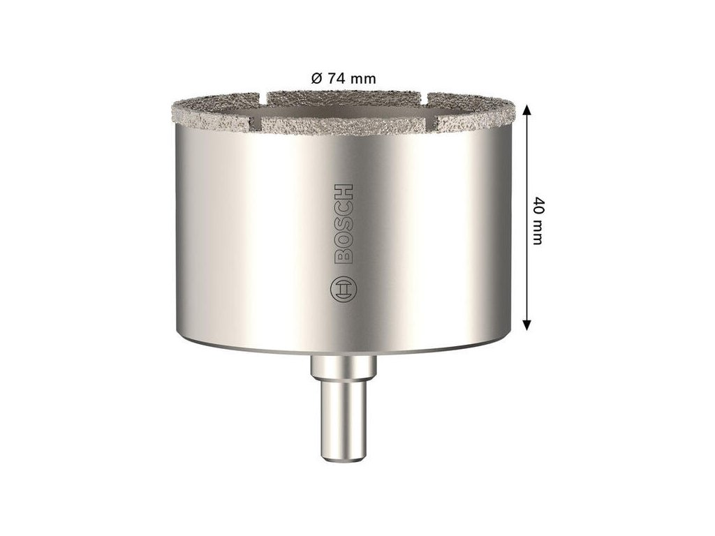 Pre špecifické inštalačné otvory v keramike s priemerom 74 mm je tu diamantová dierovka Bosch. Je navrhnutá tak, aby si poradila s tvrdosťou podlahových dlaždíc aj stenových obkladov bez zaváhania.