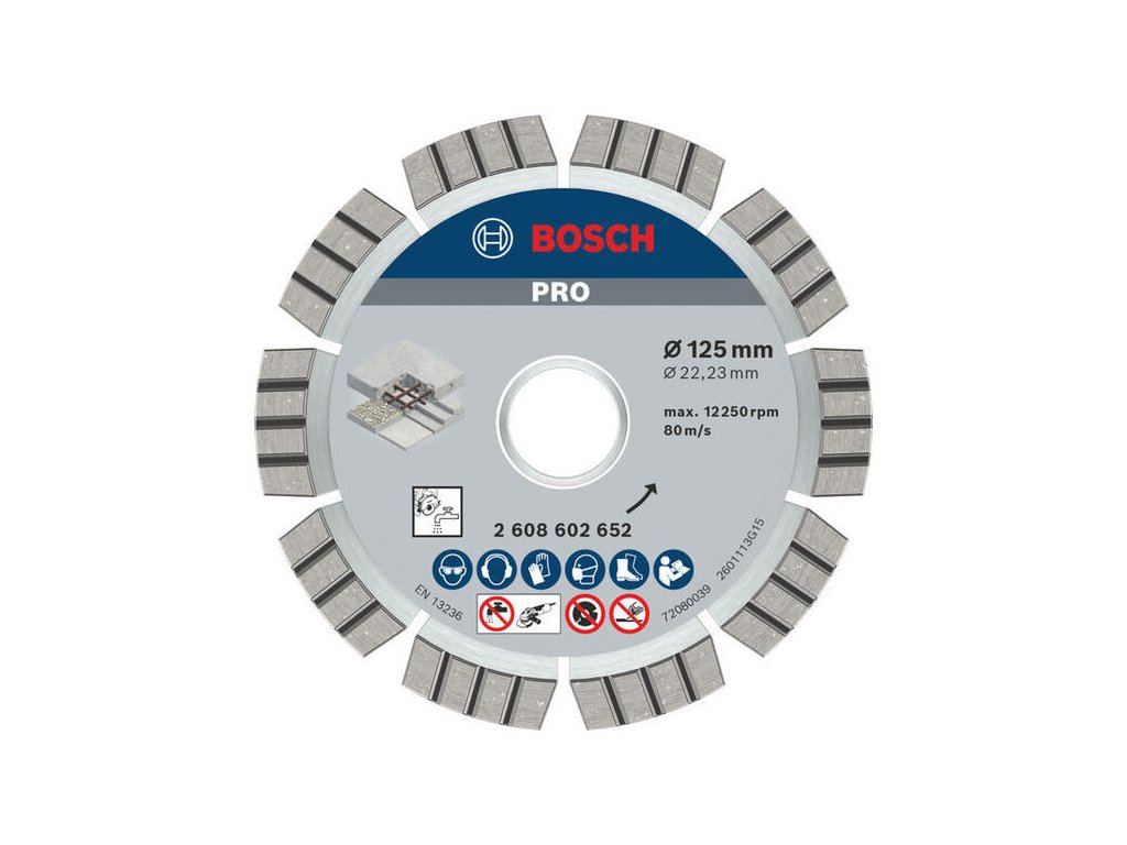Dlhá životnosť pri rezaní betónu! Betón je obľúbený pre svoju húževnatosť a všestrannosť a nachádza sa na každom stavenisku. Na rezanie do betónu je však potrebný diamantový kotúč. PRO Concrete sme navrhli tak, aby sme profesionálom poskytli rezací kotúč, ktorý ponúka skvelý rez a výnimočnú životnosť. Odolnosť kotúča PRO Concrete je založená na pokrokovom dizajne a vysokokvalitných materiáloch. Diamantové segmenty kotúča sú zvárané laserom. Ich konštrukcia s nízkym trením pomáha odstraňovať prach z rezu, čím zabraňuje opotrebovaniu bočnej strany kotúča.