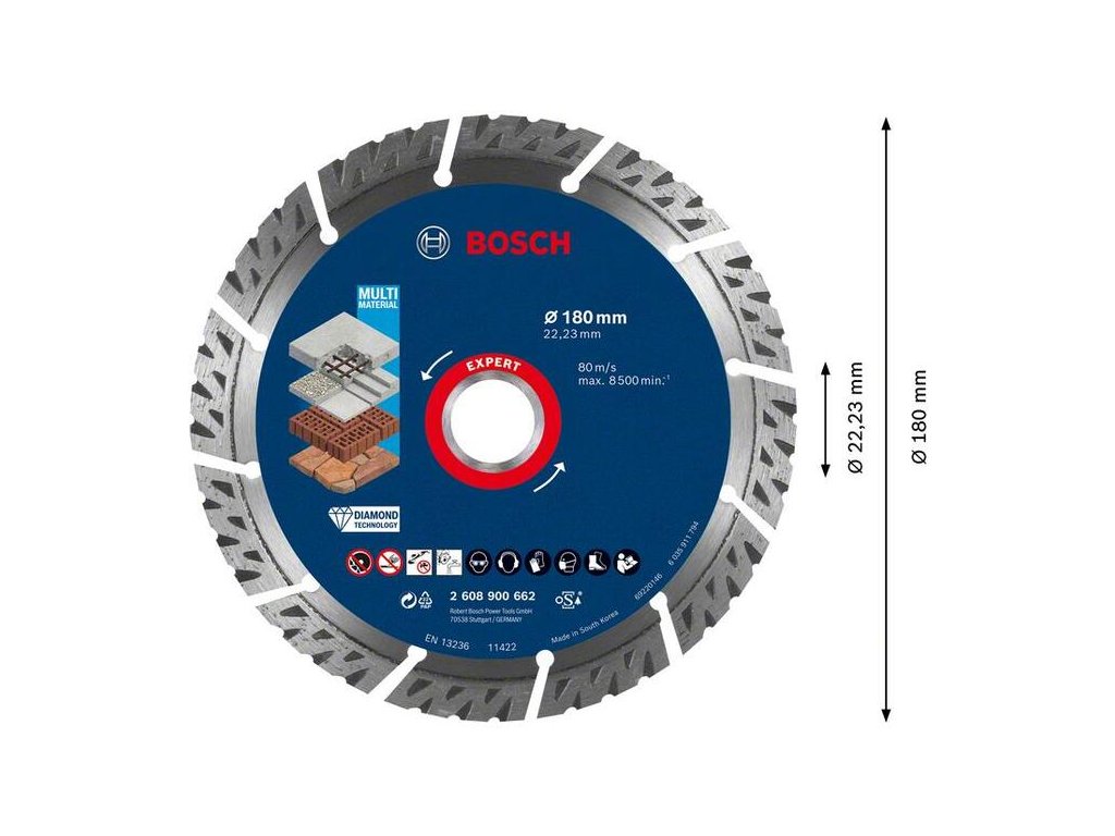 - Ponúka až 4× dlhšiu životnosť než diamantový kotúč na rôzne materiály Bosch 2608615031
