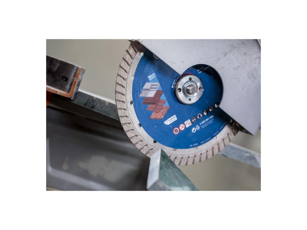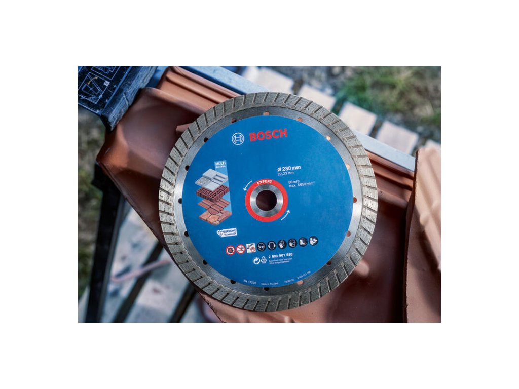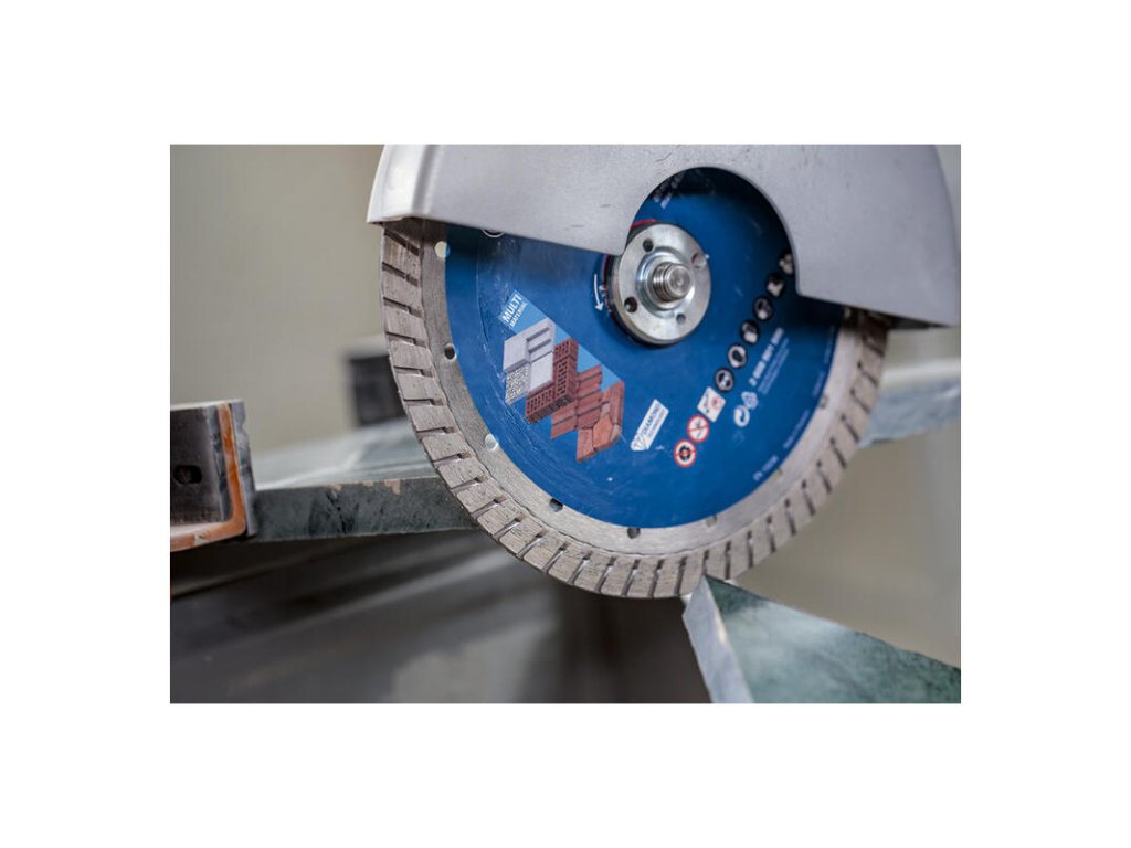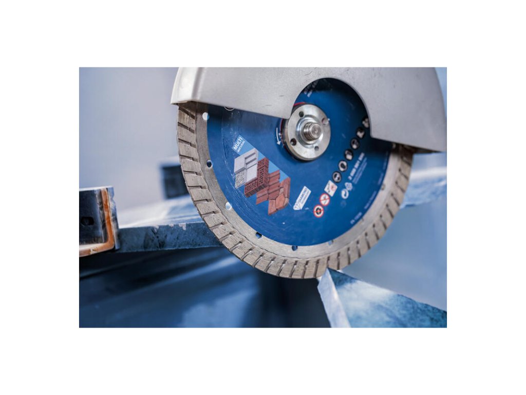 Dlhá životnosť pri rezaní rôznych materiálov! Čisté a presné rezanie je dôležité pri spracovaní stavebných materiálov, ktoré zostávajú viditeľné: mäkké kamenné dlažobné dosky, tehly alebo strešná krytina. Všetky tieto materiály vyžadujú silný rezací kotúč, ktoré je zároveň schopný dosiahnuť rez bez drsných hrán. Ako kotúč EXPERT Multi Material turbo – rezací kotúč, ktorý sme navrhli, aby vám pomohol dosiahnuť potrebné hladké rezy – rýchlejšie a po dlhý čas. Rezná hrana kotúča EXPERT Multi Material turbo spája výhody kotúčov s delenými a sintrovanými segmentmi, čo vám pomôže pracovať rýchlejšie a pritom dosiahnuť čistý a presný rez. Bosch Diamond Technology – matrica z kovu a diamantov – zaisťuje, že rezná hrana je pevná, nepraská a ani sa neláme. Či už budete potrebovať rezať mäkké kamenné dosky, betón, mäkké murivo alebo strešnú krytinu, silná samoostriaca rezná hrana vám pomôže prácu zvládnuť.
