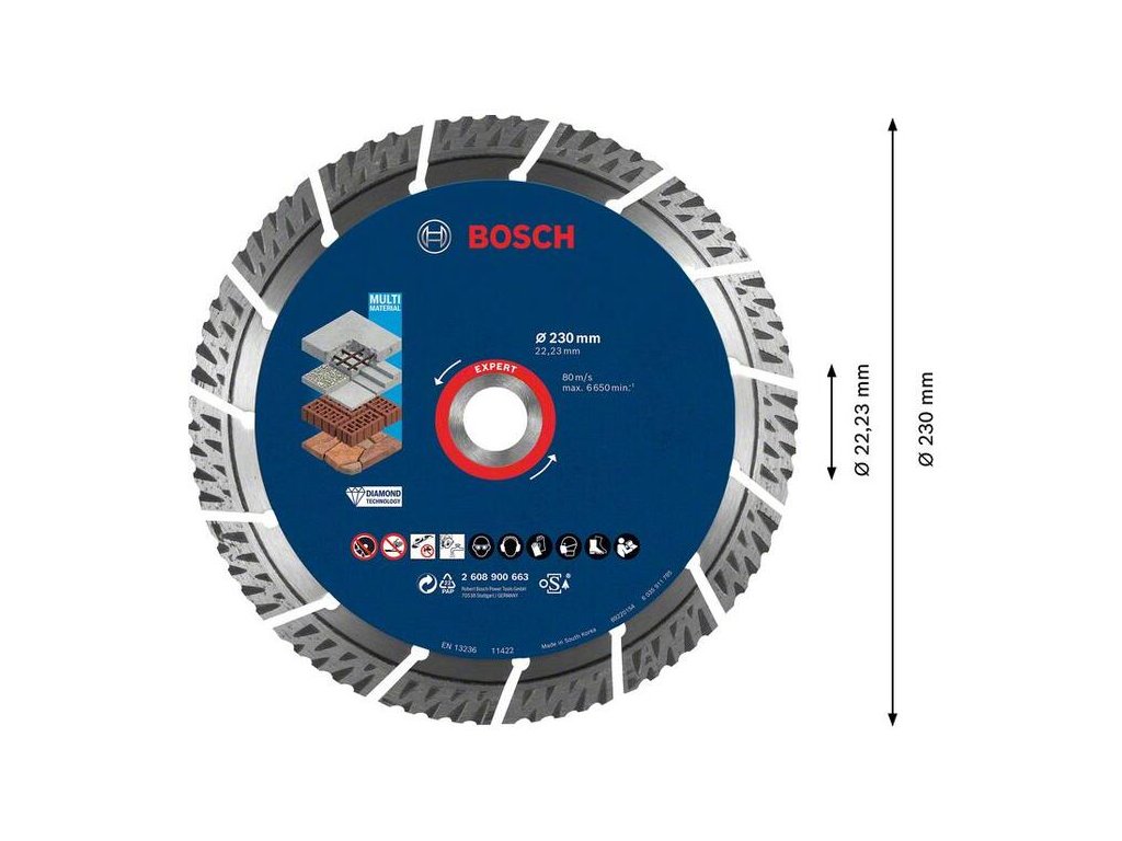 Bosch Diamantový rezací kotúč EXPERT MultiMaterial 230 × 22,23 × 2,4 ×15 mm 2608900663