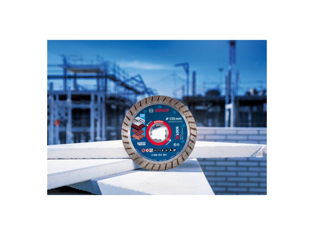 Dlhá životnosť pri rezaní rôznych materiálov! Čisté a presné rezanie je dôležité pri spracovaní stavebných materiálov, ktoré zostávajú viditeľné: mäkké kamenné dlažobné dosky, tehly alebo strešná krytina. Všetky tieto materiály vyžadujú silný rezací kotúč, ktoré je zároveň schopný dosiahnuť rez bez drsných hrán. Ako kotúč EXPERT Multi Material turbo – rezací kotúč, ktorý sme navrhli, aby vám pomohol dosiahnuť potrebné hladké rezy – rýchlejšie a po dlhý čas. Rezná hrana kotúča EXPERT Multi Material turbo spája výhody kotúčov s delenými a sintrovanými segmentmi, čo vám pomôže pracovať rýchlejšie a pritom dosiahnuť čistý a presný rez. Bosch Diamond Technology – matrica z kovu a diamantov – zaisťuje, že rezná hrana je pevná, nepraská a ani sa neláme. Či už budete potrebovať rezať mäkké kamenné dosky, betón, mäkké murivo alebo strešnú krytinu, silná samoostriaca rezná hrana vám pomôže prácu zvládnuť.