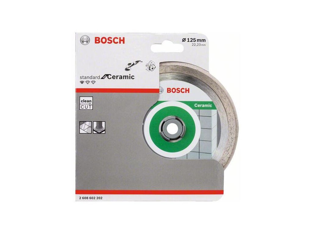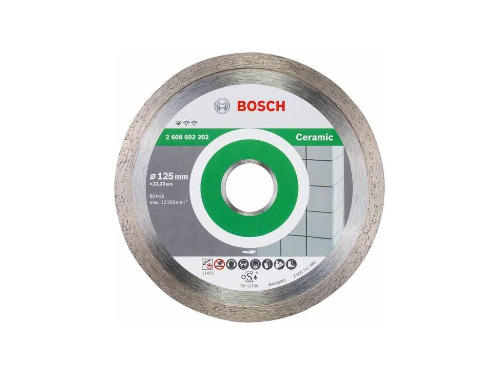 Diamantový rezací kotúč Standard for Ceramic poskytuje spoľahlivé rezy do dlaždíc. Súvislá rezná hrana dosahuje presné výsledky pri práci so všetkými druhmi dlaždíc. Kvalitatívne štandardy kotúča okrem toho zaručuje kompetenčné centrum Bosch pre diamantové nástroje vo Švajčiarsku. Tento kotúč používajte na rezanie do keramiky, porcelánu a jemnej kameniny.