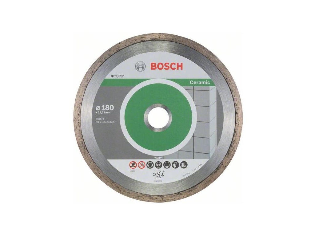 Diamantový rezací kotúč Standard for Ceramic poskytuje spoľahlivé rezy do dlaždíc. Súvislá rezná hrana dosahuje presné výsledky pri práci so všetkými druhmi dlaždíc. Kvalitatívne štandardy kotúča okrem toho zaručuje kompetenčné centrum Bosch pre diamantové nástroje vo Švajčiarsku. Tento kotúč používajte na rezanie do keramiky, porcelánu a jemnej kameniny.