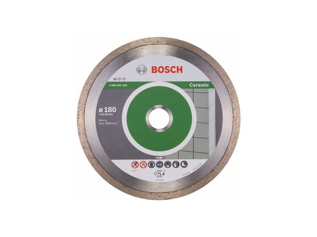 Diamantový rezací kotúč Standard for Ceramic poskytuje spoľahlivé rezy do dlaždíc. Súvislá rezná hrana dosahuje presné výsledky pri práci so všetkými druhmi dlaždíc. Kvalitatívne štandardy kotúča okrem toho zaručuje kompetenčné centrum Bosch pre diamantové nástroje vo Švajčiarsku. Tento kotúč používajte na rezanie do keramiky, porcelánu a jemnej kameniny.