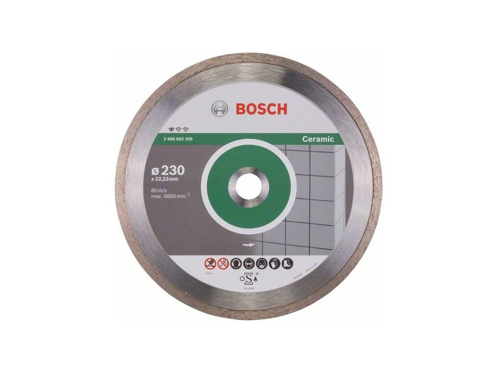 Diamantový rezací kotúč Standard for Ceramic poskytuje spoľahlivé rezy do dlaždíc. Súvislá rezná hrana dosahuje presné výsledky pri práci so všetkými druhmi dlaždíc. Kvalitatívne štandardy kotúča okrem toho zaručuje kompetenčné centrum Bosch pre diamantové nástroje vo Švajčiarsku. Tento kotúč používajte na rezanie do keramiky, porcelánu a jemnej kameniny.