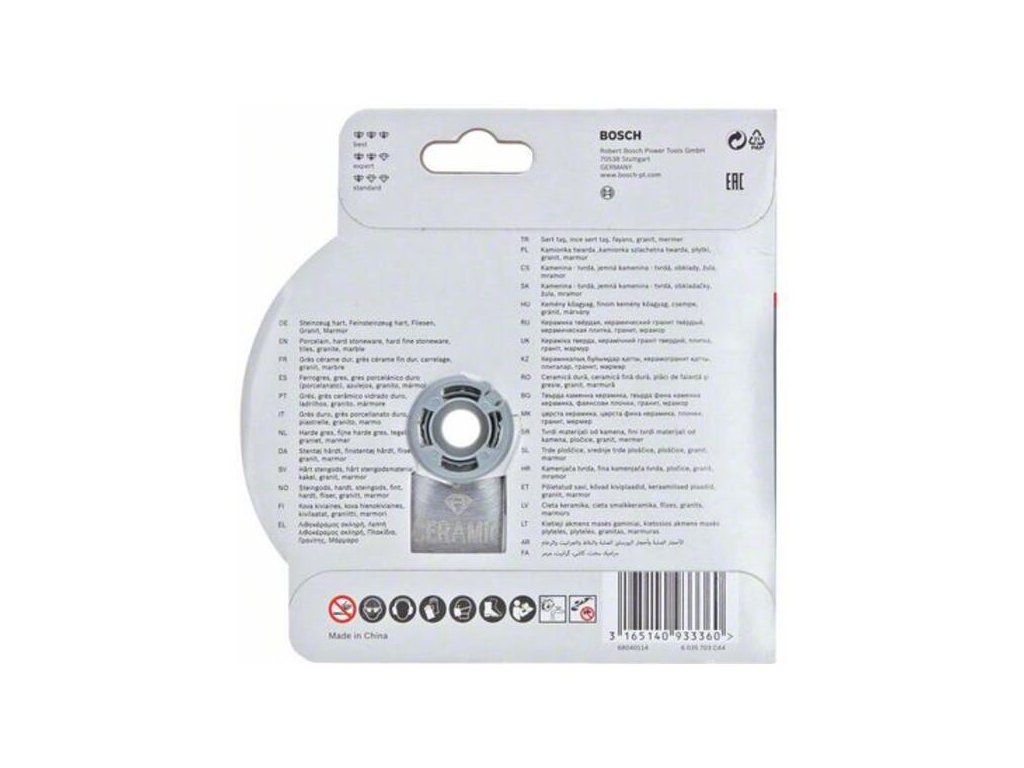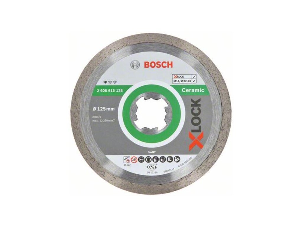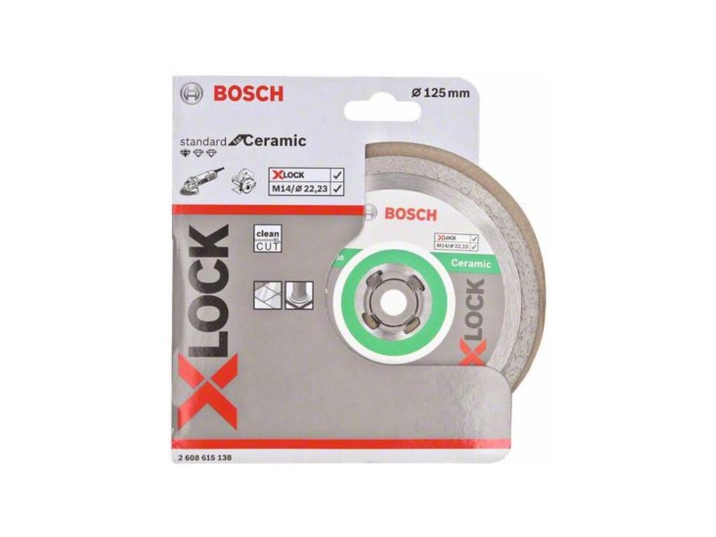 Diamantový rezací kotúč X-LOCK Standard for Ceramic poskytuje spoľahlivé rezy do dlaždíc. Jeho súvislá rezná hrana dosahuje presné výsledky pri práci so všetkými druhmi dlaždíc. Kvalitatívne štandardy kotúča okrem toho zaručuje kompetenčné centrum Bosch pre diamantové nástroje vo Švajčiarsku. Vďaka bezkľúčovému systému X-LOCK je výmena rezacích kotúčov rýchla a pohodlná.
