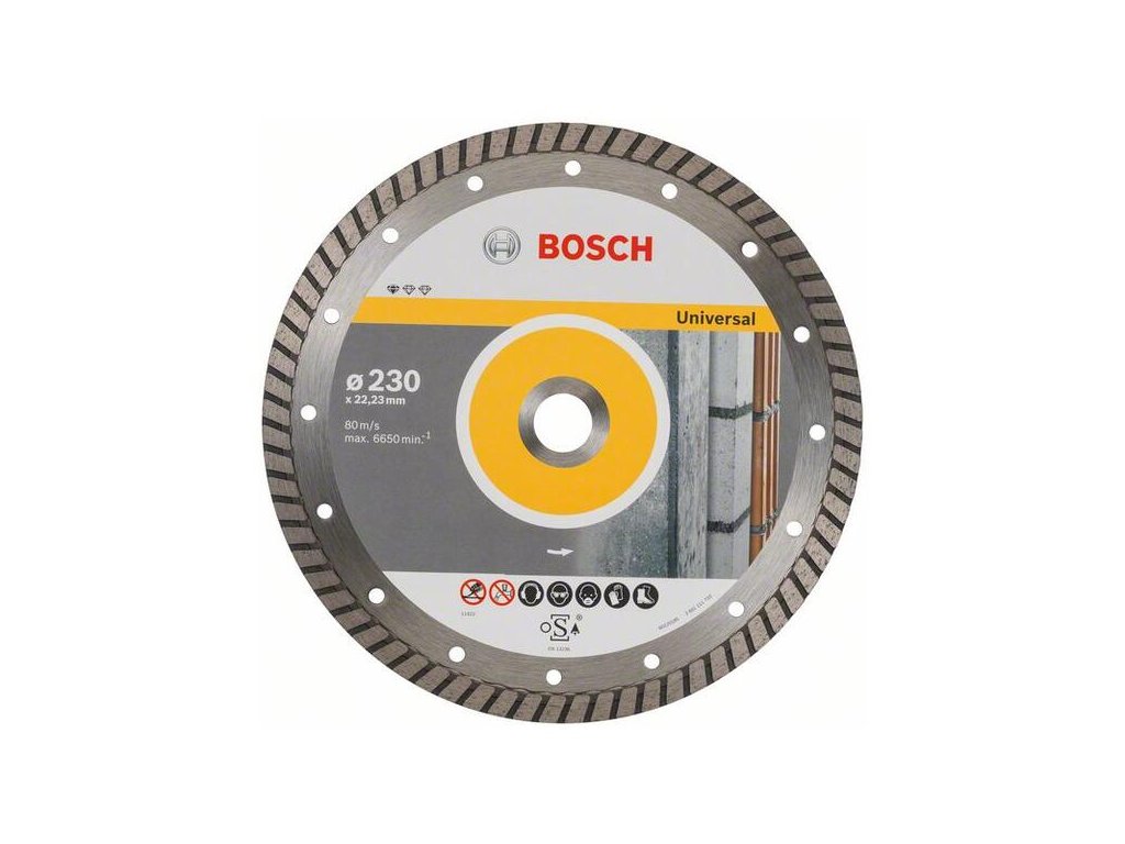 Diamantový rezací kotúč Standard for Universal Turbo poskytuje spoľahlivé rezy do univerzálnych stavebných materiálov. Jeho diamantová zmes je skonštruovaná na rezanie rôznych stavebných prvkov s výsledkom dobre vytvarovaných rezných hrán. Tieto kvalitatívne štandardy zaručuje kompetenčné centrum Bosch pre diamantové nástroje vo Švajčiarsku. Tento kotúč používajte pri rezaní stavebných materiálov, ako sú betón a murivo.