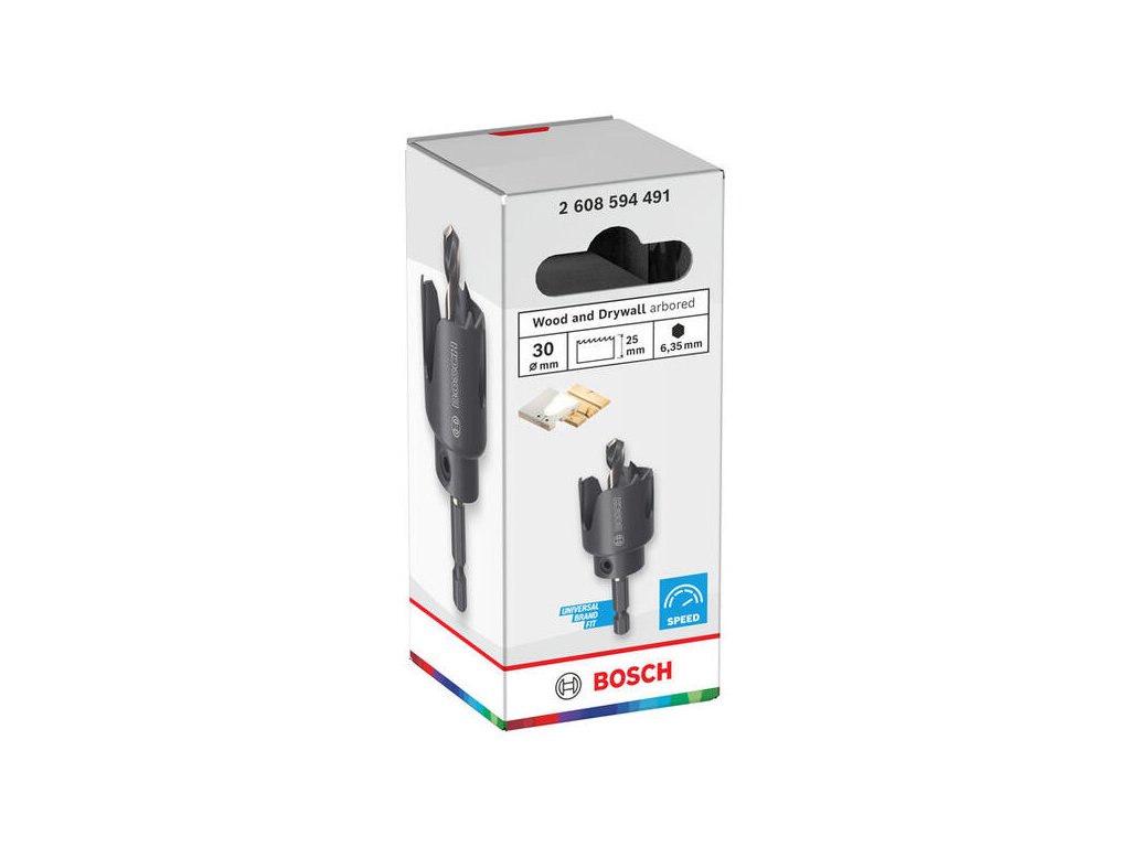 Dierovka Bosch s priemerom 30 mm je špecializovaný nástroj pre vŕtanie do stropných podhľadov. Vďaka skrátenej pracovnej dĺžke je ideálna pre sadrokartón a drevené obklady, kde nie je potrebná hlboká dierovka.