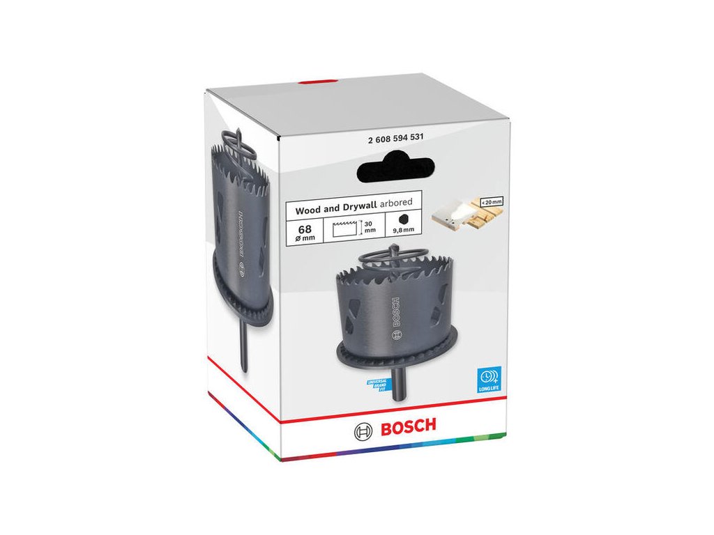 Táto dierovka je splneným snom každého elektrikára. Model Bosch s priemerom 68 mm je vybavený integrovaným hĺbkovým dorazom (lemom), ktorý umožňuje vyvŕtať presný otvor pre zápustnú montáž elektrických krabíc.