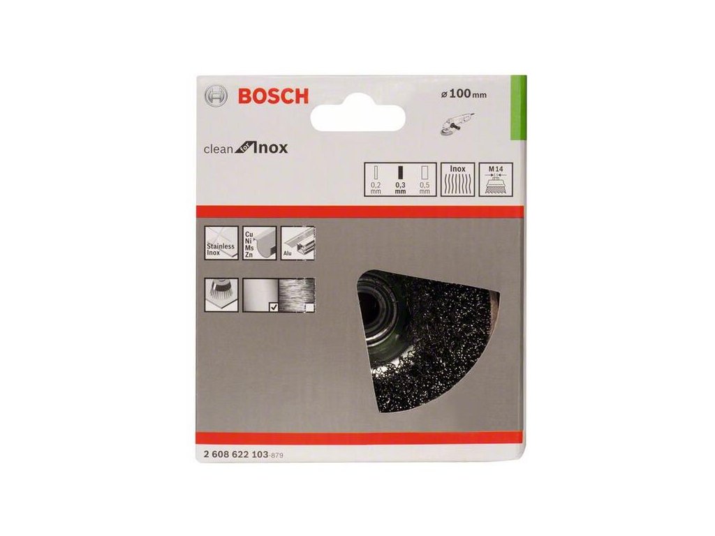 Bosch Drôtená kefa hrncová vlnitá oceľ nehrdzavejúca D100mm 0,3mm M14 2608622103